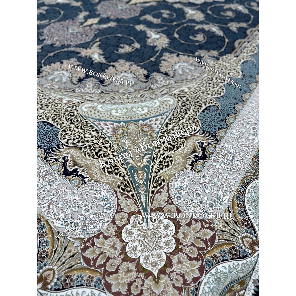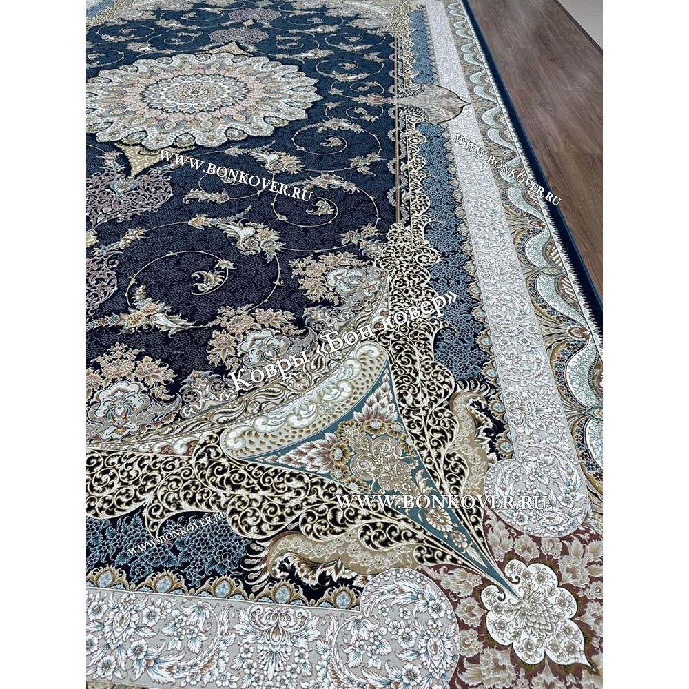 Долго искали смотрели на разных сайтах , в итоге ваш ковер приглянулся больше всего . Доставили в рулоне на следующий день , оплатили при получении . Идеальный вариант , цвет темно синий с переливом - рисунок очень выйгрышно смотрится !