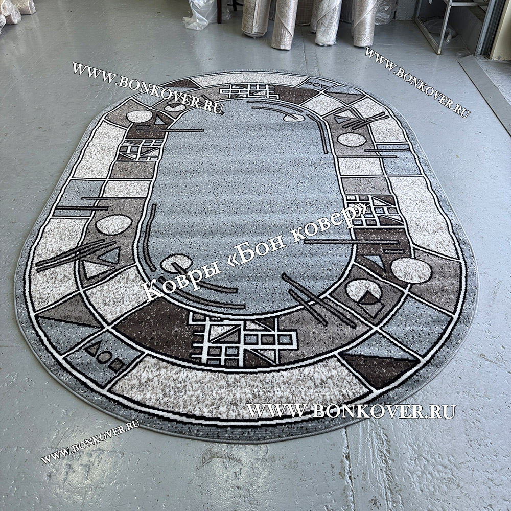 Ковер Коротковорсный Карпет Дизайн 21 Овал станет превосходным дополнением интерьера, оформленного в современном или классическом стиле. Мягкое, но прочное, ковровое изделие обеспечивает тепло- и шумоизоляцию, отличается длительным сроком эксплуатации, пожаробезопасностью, экологичностью и высокой износостойкостью, является отличной гарантией от повышенной влажности в комнате и утеплителем для холодного пола. Благодаря качеству материалов, ковер не деформируется, сохраняет форму под тяжестью предметов мебели. За его поверхностью легко ухаживать.