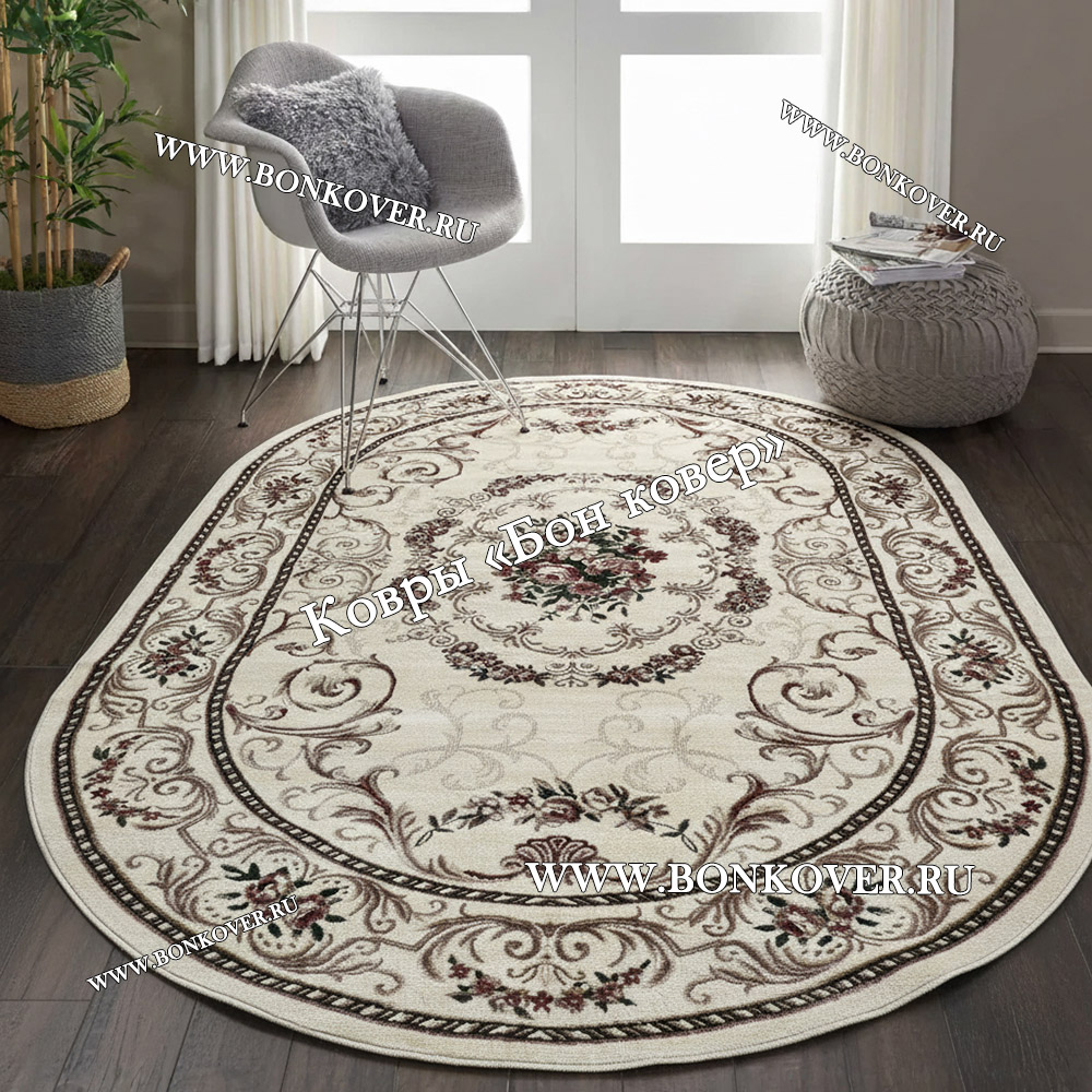 Красивый Ковер Лайт Карпет Дизайн 23774 Овал наполняет интерьер квартиры теплом и уютом, гармонично сочетает в себе изящество и стиль. Он создан из экологически чистого сырья, прочный и долговечный.