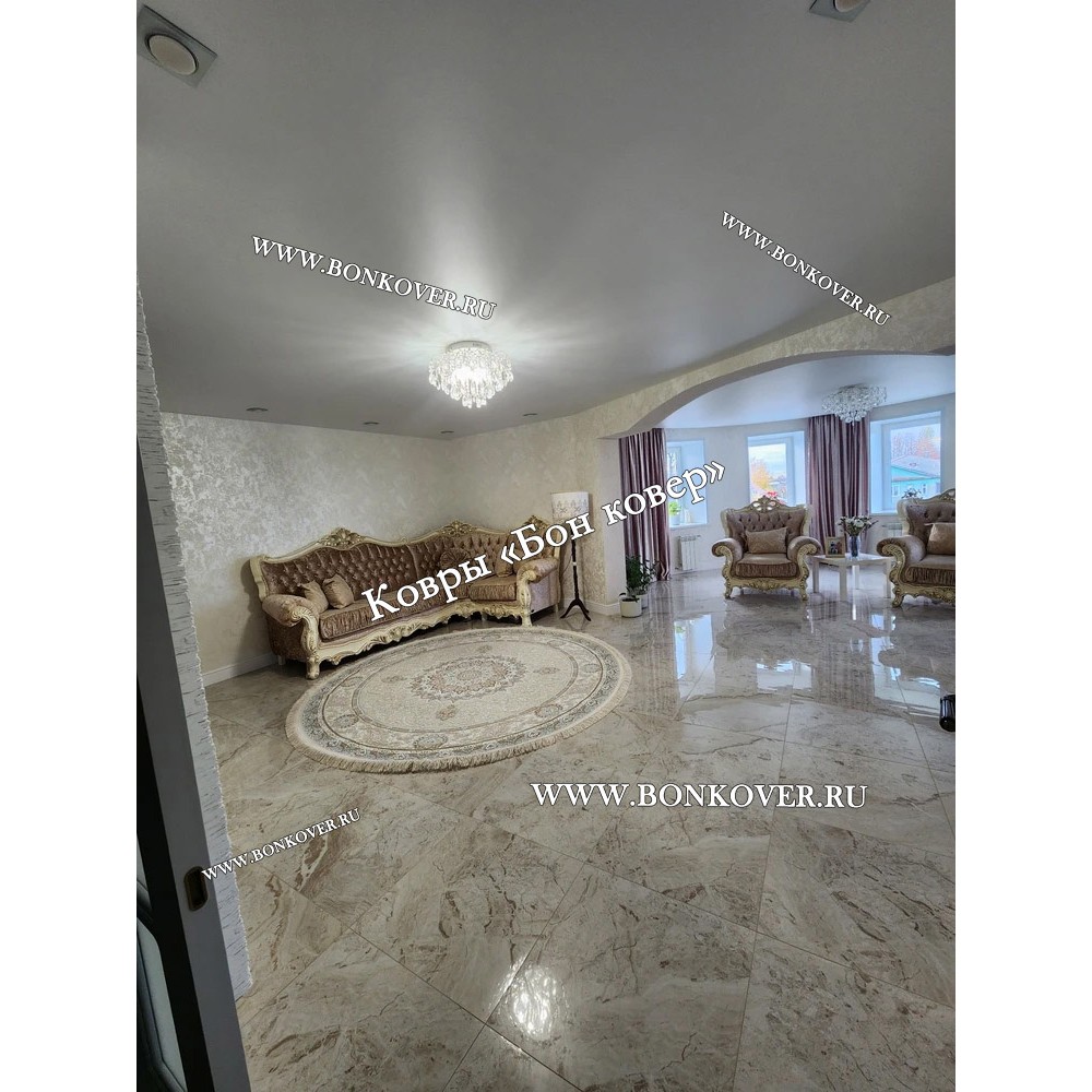 Шикарный Круглый Ковер Для Гостиной Арт 30552 наполняет интерьер гостиной теплом и уютом, гармонично сочетает в себе изящество и красоту. Он соткан из износостойких материалов, прочный и долговечный.