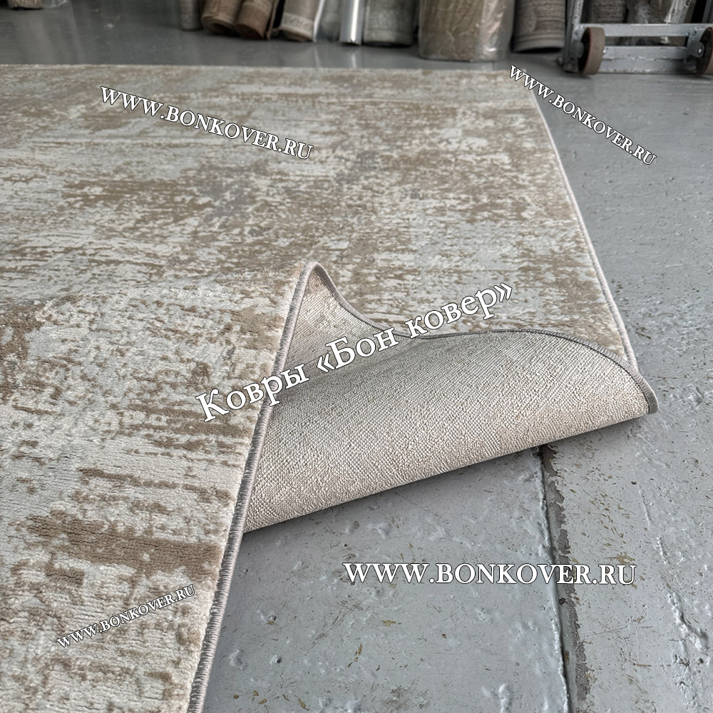 Элегантный Современный Ковер Дизайн 046 Беж с Серым наполняет интерьер комнаты теплом и уютом, гармонично сочетает в себе изящество и стиль. Он соткан из износостойких материалов, прочный и долговечный.