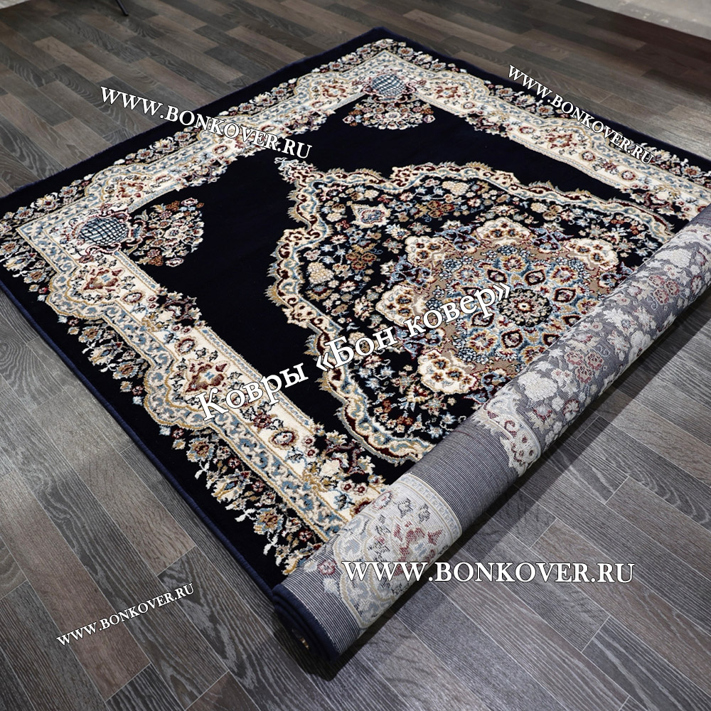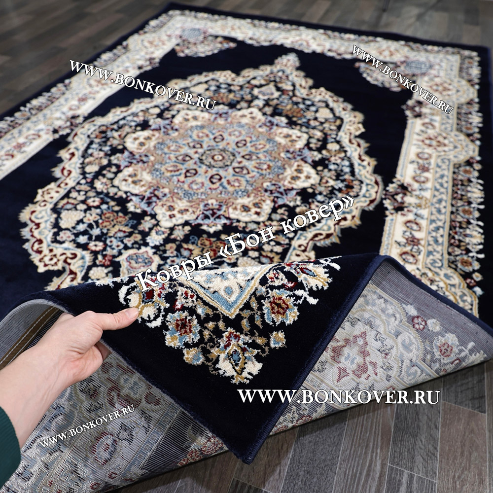 Долго искали смотрели на разных сайтах , в итоге ваш ковер приглянулся больше всего . Доставили в рулоне на следующий день , оплатили при получении . Идеальный вариант , цвет темно синий с переливом - рисунок очень выйгрышно смотрится !